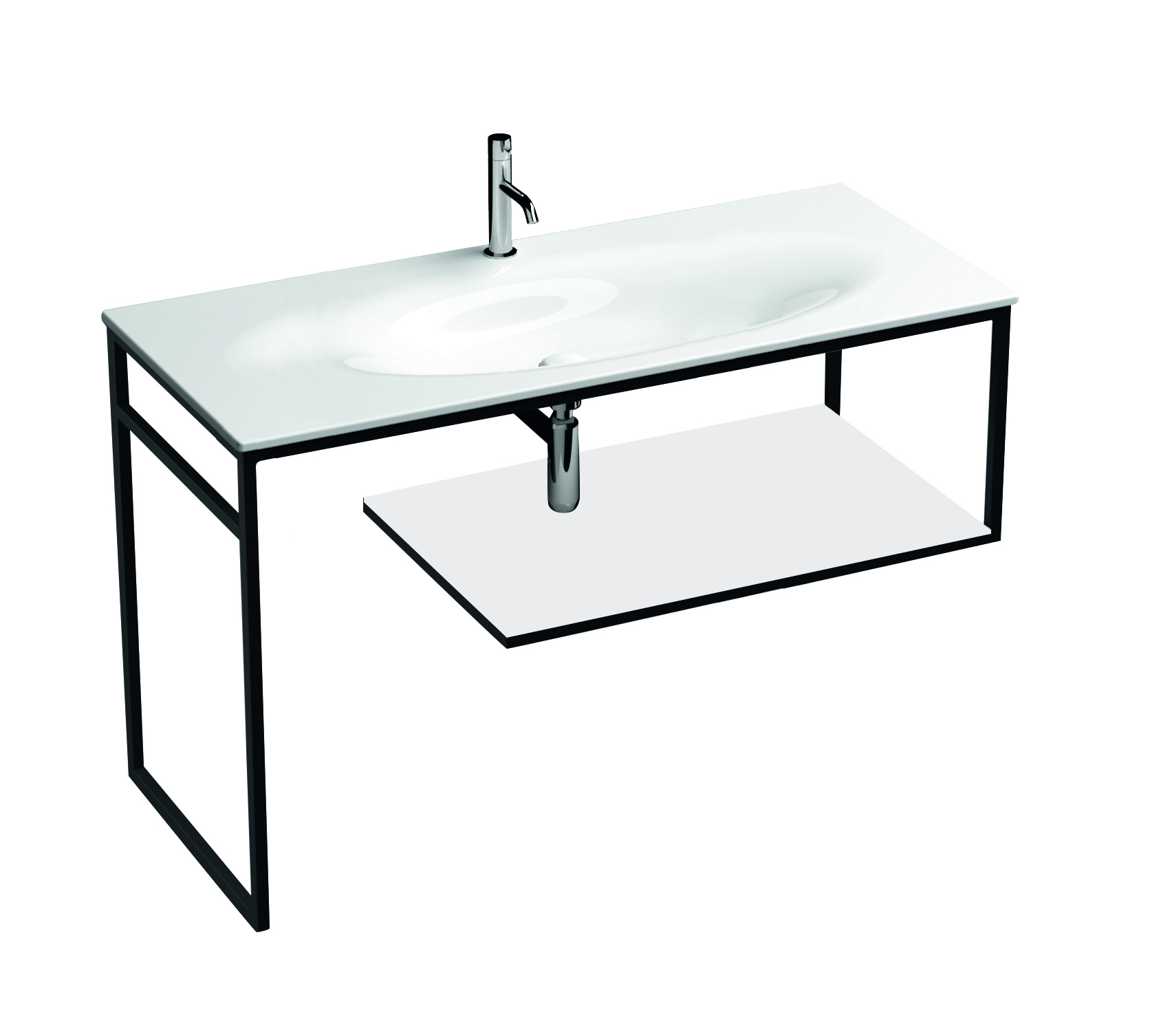 LOUISE struttura a terra in acciaio inox nero matt con ripiano bianco per lavabo